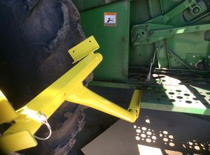 1. First remove handrail from rear of platform then mount 3x3 square tube and turn buckle to belly of combine, insert pipe bracket and ladder and pin brackets as shown, lightly snug bolts until final assembly.